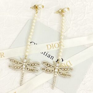 DIOR-Tassel Pearl Dragonfly Rhinestone Stud Earrings #2363